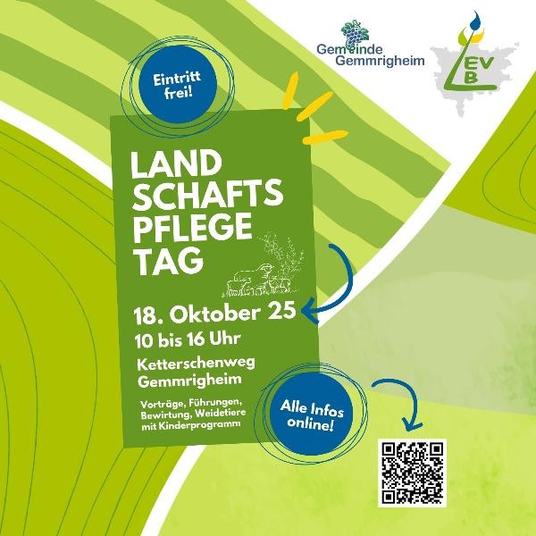 Landschaftspflegetag 2025 Am Samstag, 18. Oktober 2025, von 10 bis 16 Uhr findet der Landschaftspflegetag in Gemmrigheim statt. Der Eintritt ist frei - eine Anmeldung ist nicht erforderlich.Festes Schuhwerk wird empfohlen. mehr...