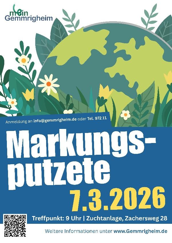 Die Gemmrigheimer Markungsputzete ist eine Gemeinschaftsaktion der Gemmrigheimer Bürgerinnen und Bürger unter der Schirmherrschaft von Bürgermeister Jörg Frauhammer. Organisiert wird die Markungsputzete auch in diesem Jahr in gekonnter Manier von Markus Trinkner, dem Leiter Technische Dienste. Wir freuen uns auf eine rege Teilnahme.